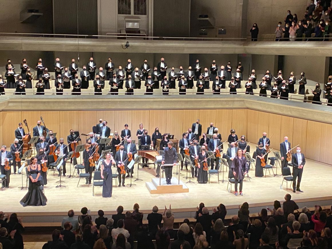 This 85 minute version is the latest in a series of adaptations to the new normal. Chorus and orchestra, except for the wind players, were masked. They reduce the hall’s capacity, eliminating intermissions and reducing the onstage complement: all in the interest of safety. The by-products are a cleaner sound due to a better acoustic, and a more economical program.