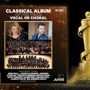TMC wins Juno Award – Classical Album of the Year: Vocal or Choral – for Thaïs