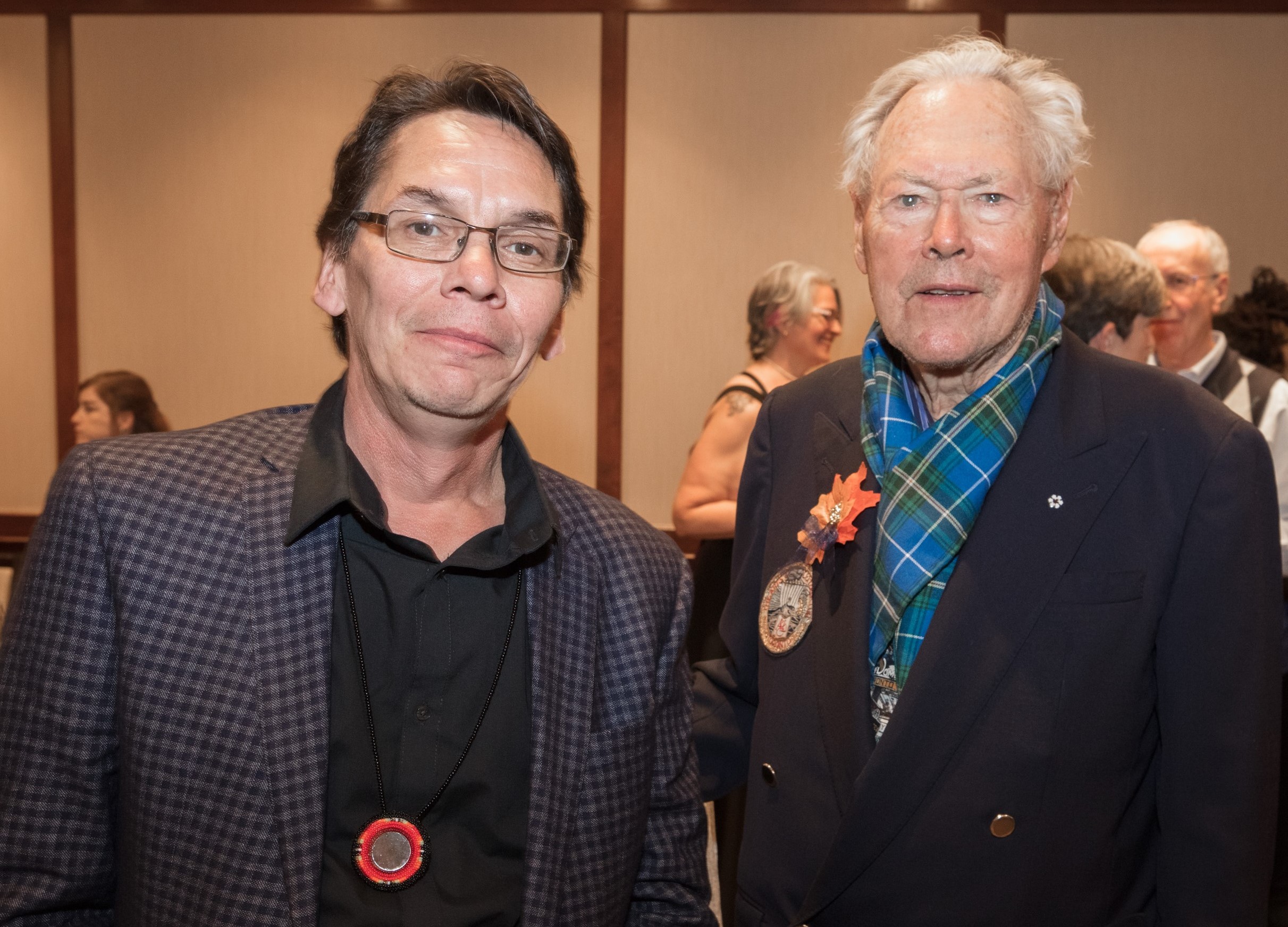 Photo: John Lawson and composer Andrew Balfour. We were thrilled to have John at our 125th anniversary Gala concert in October 2019; the concert included the premiere of Mamachimowin by Andrew Balfour. (Photo by John Hryniuk.)